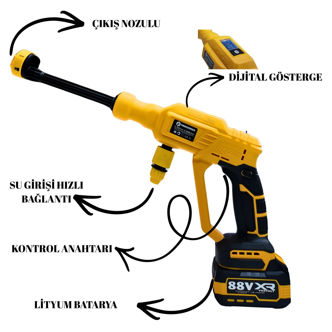 Prohummer PH334 Profesyonel Kömürsüz Yüksek Basınçlı Çift Akülü Oto Araba Yıkama, Sulama, İlaçlama Makinesi, Araç Yıkama