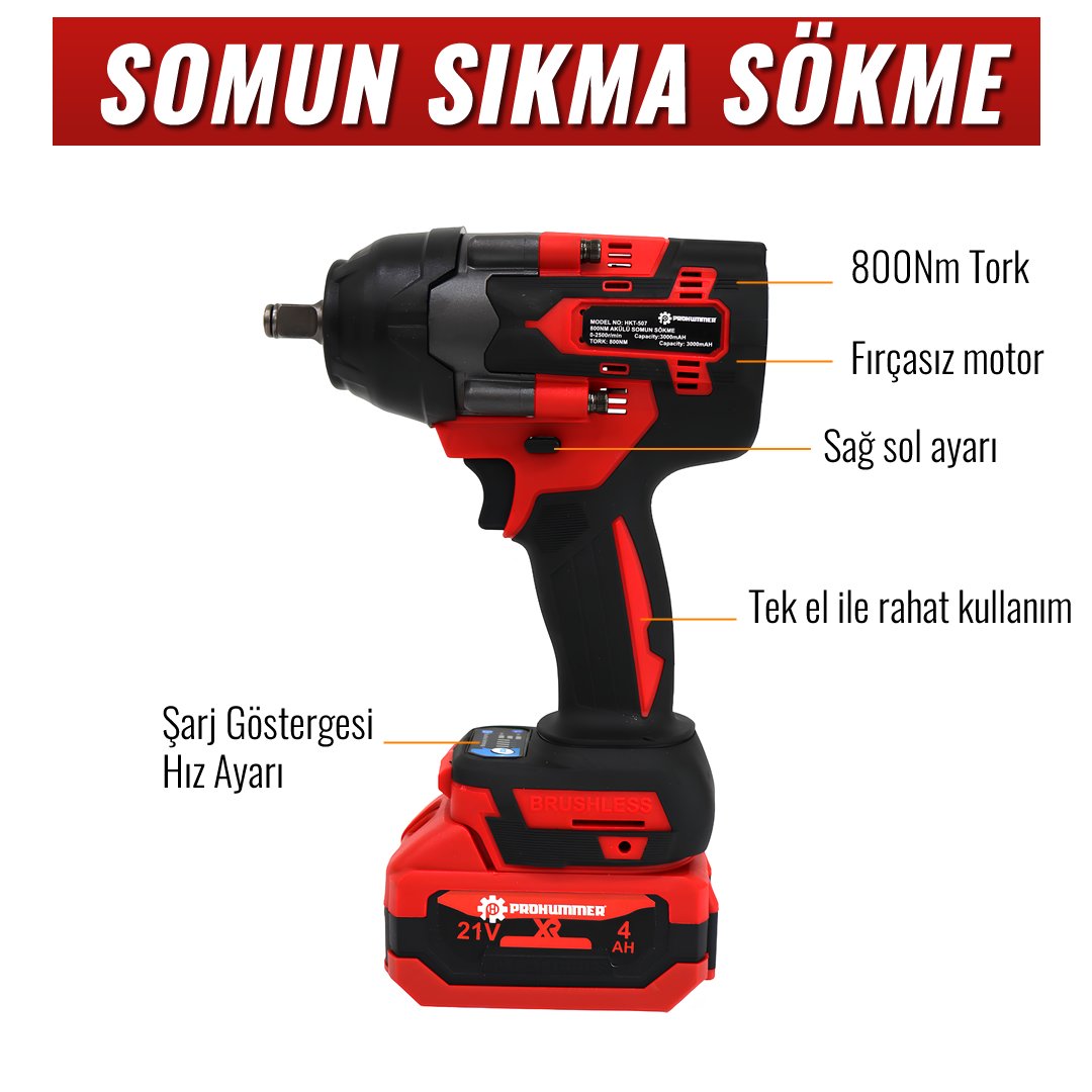 Yeni nesil geliştirilmiş akü teknolojisi prohummer ışıklı kırmızı 5li set, evde atölyede tüm işlerinizi kolayca halledin.
