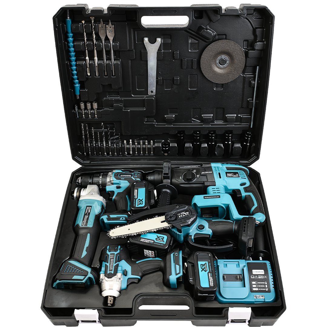 Profesyoneller için geliştirilmiş 5 ürün bir arada ; 125mm Avuç Taşlama, Sds Plus Kırıcı Delici Hilti, Somun Sıkma Sökme, Vidalama Matkap, otomatik yağlamalı 15cm pala Dal budama testeresi