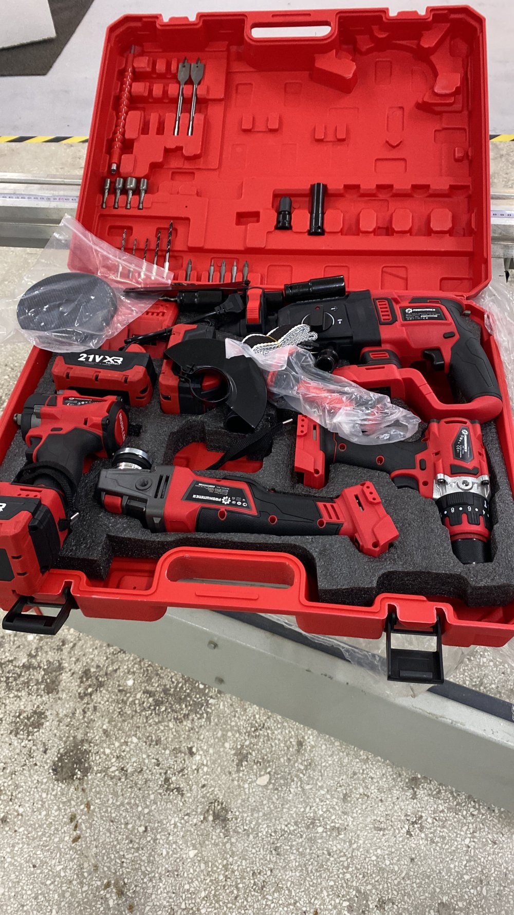 Ev ve atölye işlerinde kullanabileceğiniz bu sette 350 nm somun sökme, sds plus uç girişli kırıcı delici, 125 mm devir ayarlı avuç taşlama ve 13mm uç girişli vidalama matkap bulunmaktadır.