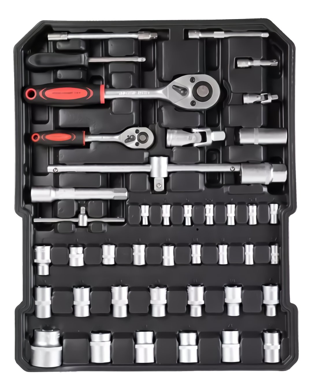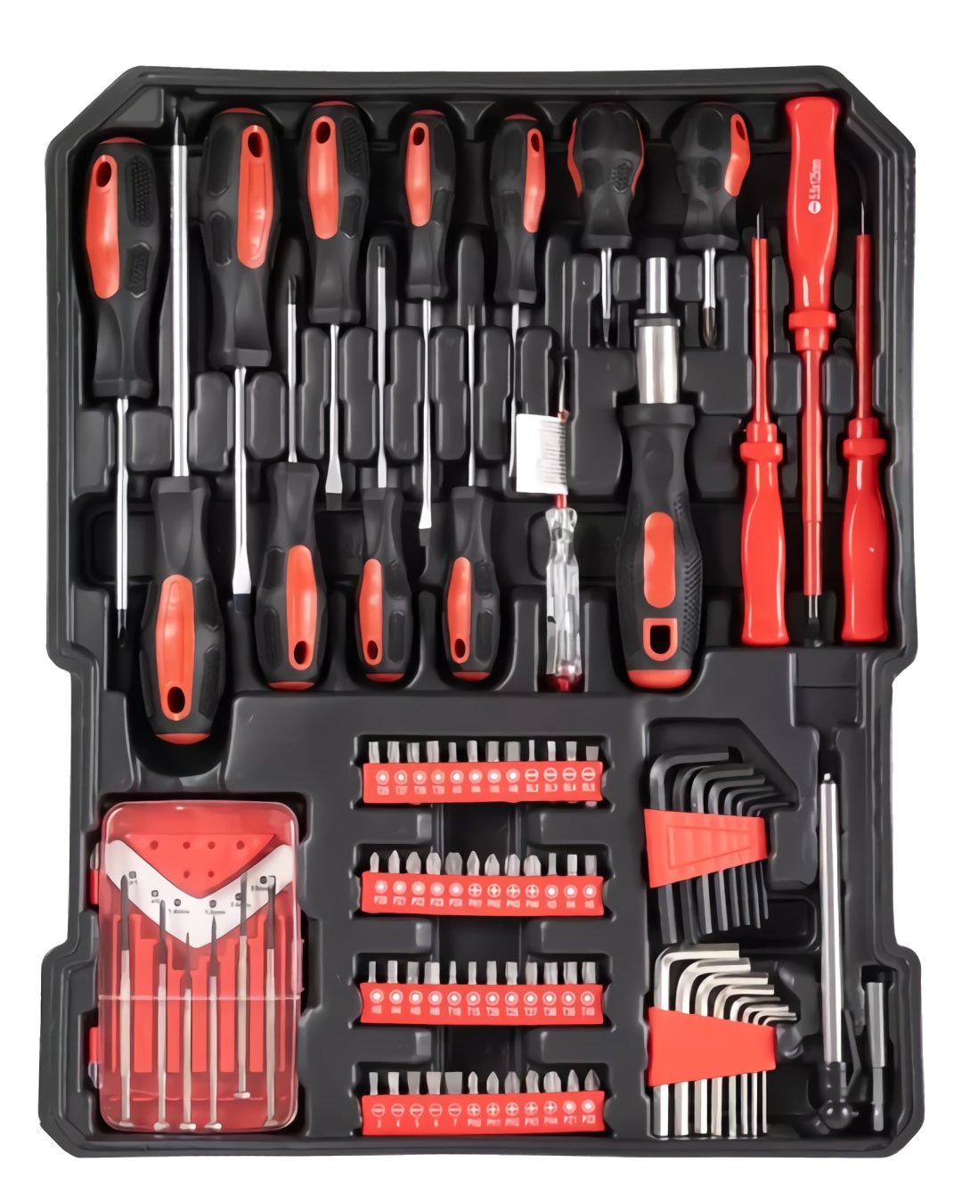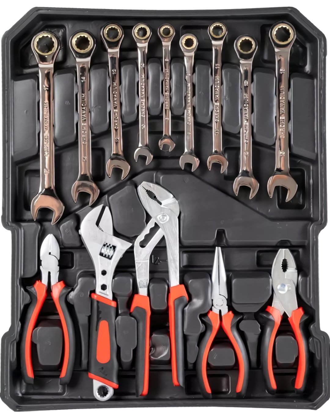 Tam profesyonel 186 parça el aletleri seti, hemen hemen her ustanın yanında taşıması gereken tüm aletler mevcuttur. Özel alaşım kaplı çelik paslanmaz malzemeden üretilmiştir.
