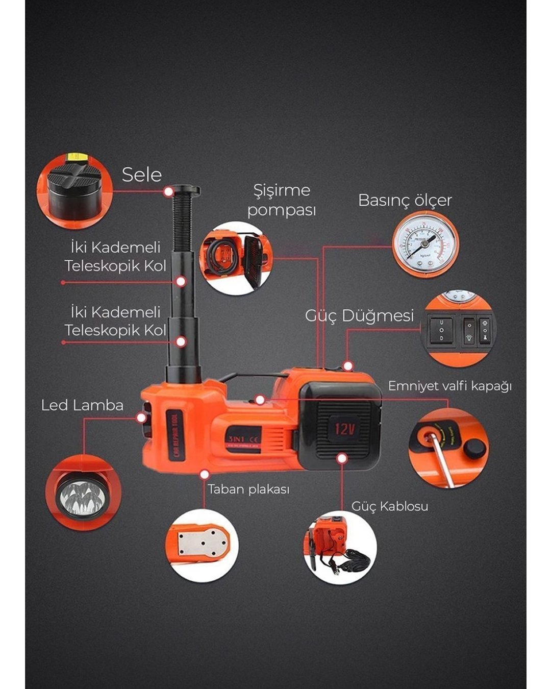 Her arabada olması gereken 5ton hidrolik kriko bunun yanında hava pompası, bijon sökme takma ve led fener hepsi tek çantada. İster amatör ister profesyonel olarak kullanabileceğiniz bu ürün tam size göre