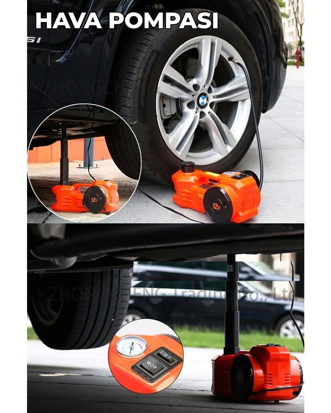 12V araç elektrik prizi ile çalışır. Çakma girişine veya akü çıkışlarına kolaylıkla takılabilir.