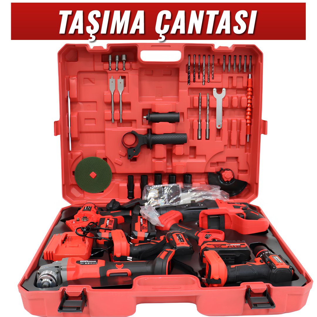 Ürün içeriği: 1 adet çantası, 1 adet somun sıkma , 1 adet vidalama , 1 adet kırıcı , 1 adet taşlama, 1 adet dal budama makası, 1 adet dal testeresi, 1 adet şarj cihazı, 3 adet batarya ve ekstra parçalar